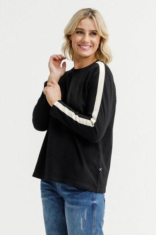 HOMELEE LONG SLEEVE CHRIS TEE - BLACK & SAND