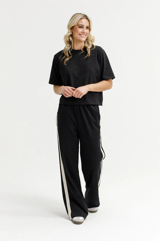 HOMELEE PALAZZO PANTS - BLACK & SAND