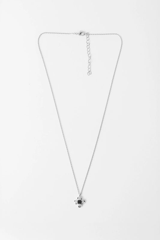 STELLA + GEMMA NECKLACE - SILVER DAISY BLACK CENTRE