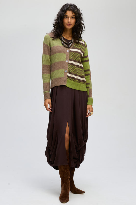LD & CO GROOVE STRIPE CARDI - COCOA