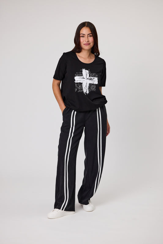 DUO JUNE PLEAT TEE - BLACK WHITE CROSS