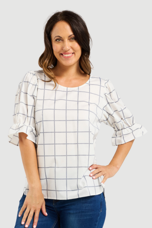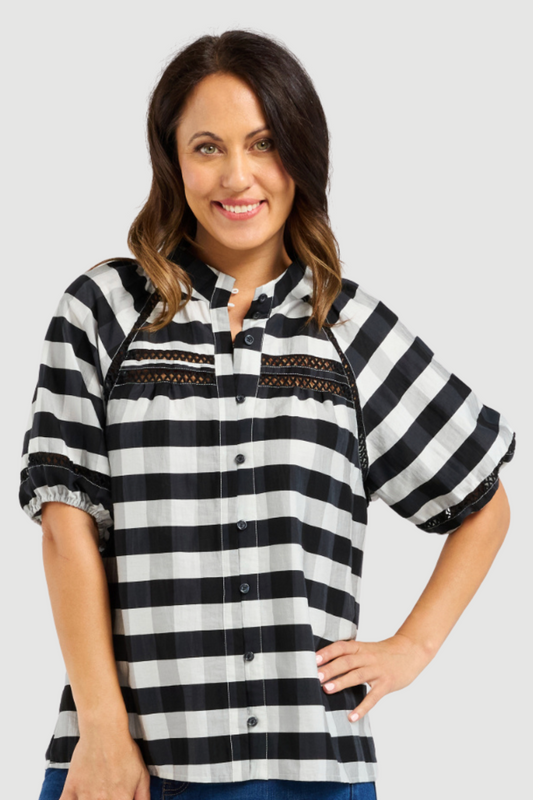 ZAFINA PENELOPE BLOUSE - BLACK CHECK