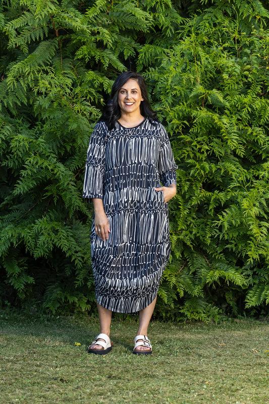 DEEANNE HOBBS LUX DRESS - BLACK SQUIGGLE