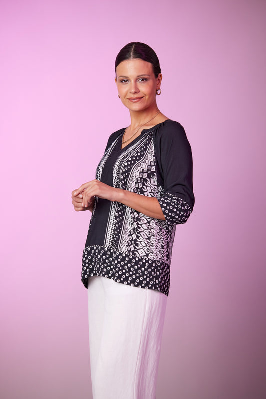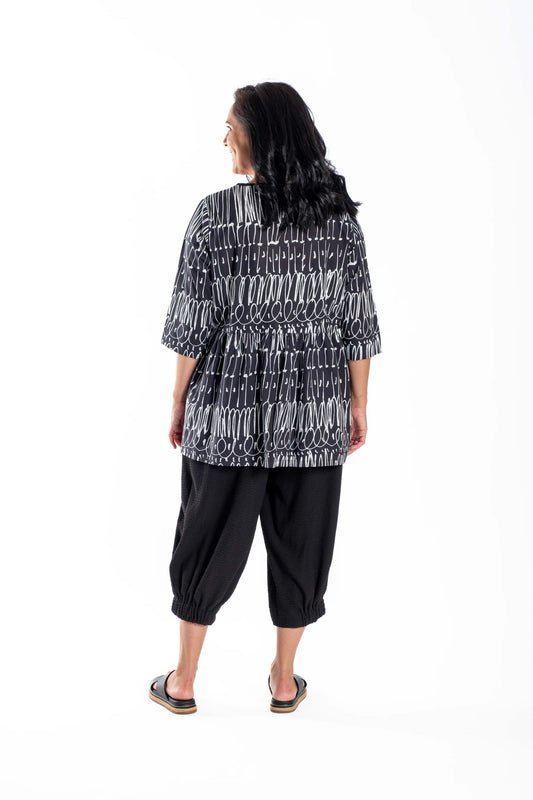 DEEANNE HOBBS STEP TOP - BLACK SQUIGGLE