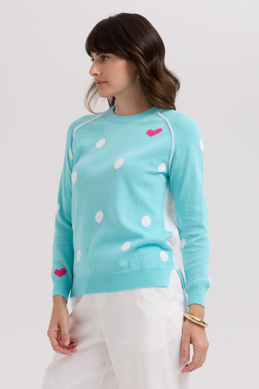 LD & CO SPOT THE LOVE JUMPER - AQUA
