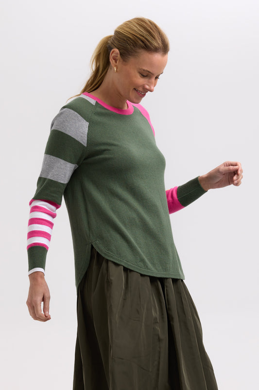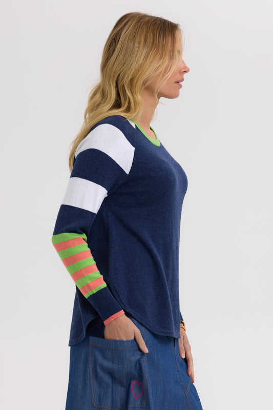 ELM HALLI SHORT SLEEVE TEE - NAVY/WHITE STRIPE