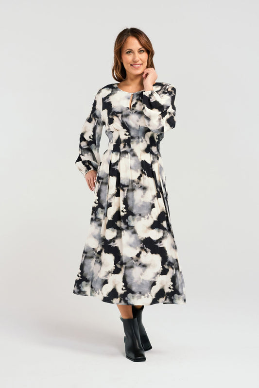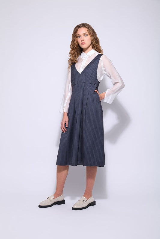 NERIS THE HEPBURN PINAFORE - STEEL STRIPE