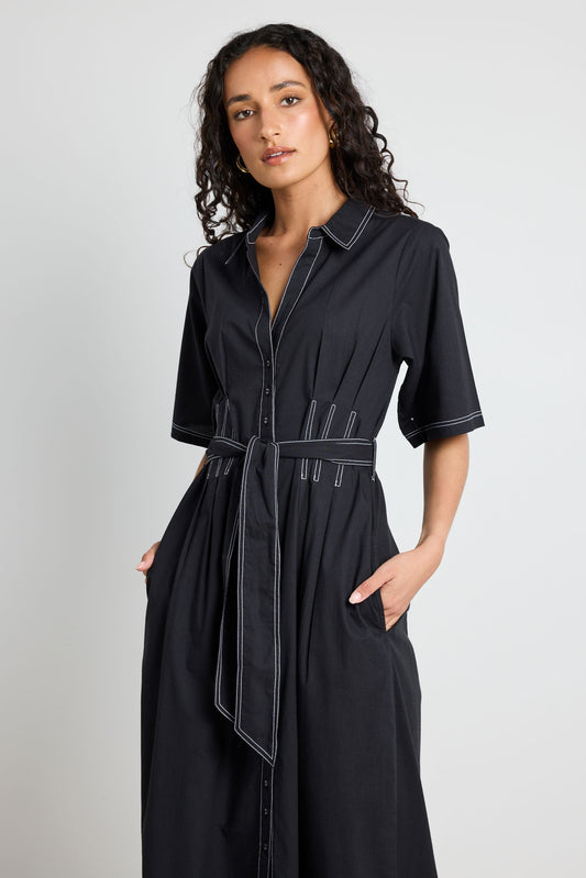 AMONG THE BRAVE SERVICE BLACK COTTON SHORT SLEEVE MIDI SHIRT DRESS