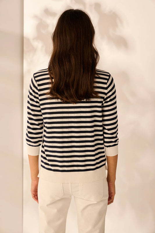 LANIA SAYER CARDI - INK/OFF WHITE STRIPE