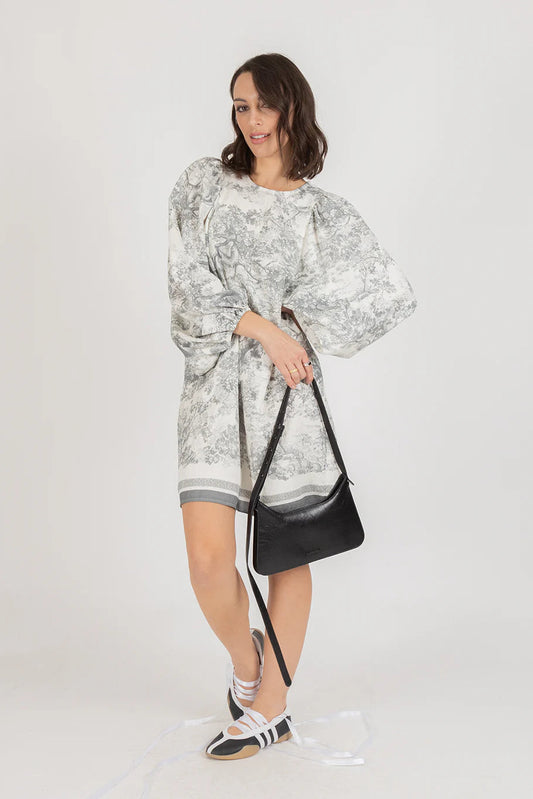 DEEANNE HOBBS FRENCH ME DRESS - CREAM/BLACK EMBROIDERED
