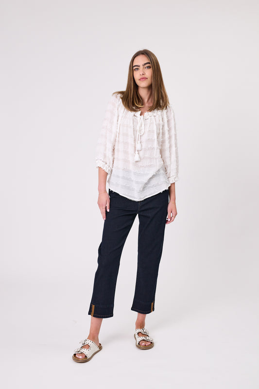 NATURALS BY O&J SHORT SLEEVE LINEN TOP - WHITE